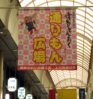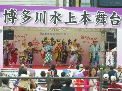上川端商店街のほか、川端中央商店街・中洲町連合会・博多リバレイン・キャナルシティ博多で組織される地元連合会・博商会(はくしょうかい)が総工費約550万円をかけて設置。個性あふれる「どんたく隊」が歌と演奏、踊りなどで一日中楽しませてくれます。
