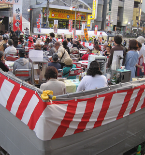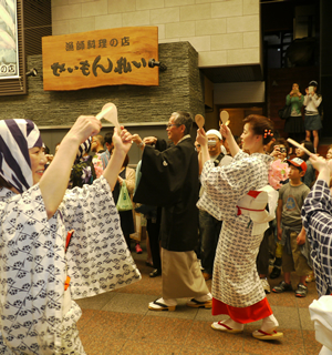 「博多川端 好いとったい」は川端商店街を始め、キャナルシティ博多、博多座、中洲、新天町など、二日間で100件近いお店を祝って周ります。